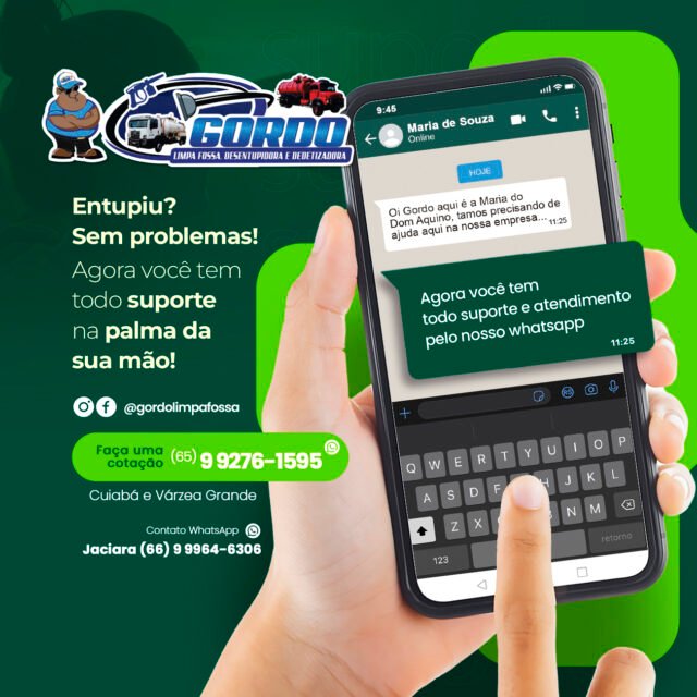 Com uma tecnologia inovadora e um caminhão com capacidade para 10 mil litros de fossa e dejetos, mais 4 mil litros de água, o “Gordo limpa fossa” tornou-se referência em Cuiabá e Várzea Grande para serviços de grande porte. Empreendimentos como mercados, shoppings e construções são exemplos dos clientes que podem solicitar o serviço.